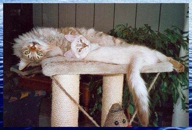Neva Cat Andrey & Neva Cat Brinja Sibirier,männlich, black-silver-mackerel-tabby Neva Masquarade, weiblich, seal-silver-tabby-point