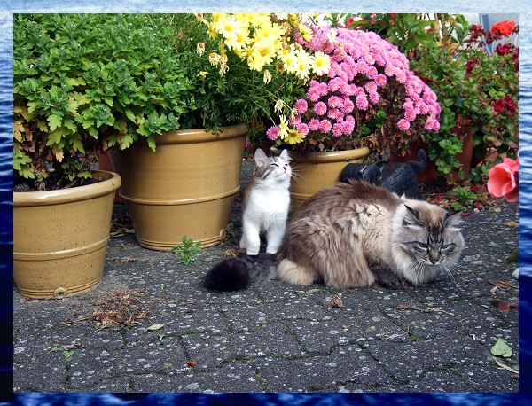 Fiona und Borjenka umgeben von einem Blumenmeer